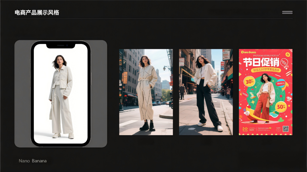 2. 物理逻辑理解:AI 终于 “读懂” 这个世界了 传统 AI 模型常常会生成违背常识的画面:漂浮在空中的物体、怪异的光影效果、不符合透视原理的场景。但 Nano Banana 继承了 Gemini 家族强大的世界知识体系,能精准理解物理规律与空间逻辑。上传一张手绘的 App 线框草图,它能自动生成符合真实 UI 设计规范的效果图;若提出 “在客厅沙发上放置抱枕” 的需求,模型会根据窗户位置自动添加逼真的阴影,就连抱枕褶皱的光影方向,都完全符合物理原理。 ![]() 3. 自然语言交互:修图像聊天一样简单 “把人物头发改成铂金色,同时保持原有发型弧度”“将背景换成赛博朋克风格的城市,还要保留前景的咖啡杯”—— 面对这些复杂的编辑需求,只需用日常语言描述出来即可。Nano Banana 支持多轮对话式编辑,甚至能理解 “让人物表情更惊讶一点,但不要太夸张” 这类模糊指令,把 AI 创作的门槛降到了历史最低。 ![]() 4. 轻量级架构:移动端也能实现秒级生成 在 AI 模型参数动辄千亿的当下,Nano Banana 却反其道而行之。依托谷歌独家的剪枝 + 量化技术,它的模型体积被压缩了数十倍,却依然能保持 95% 以上的画质水准。在普通安卓手机上,生成一张 8K 分辨率的商品图仅需 3-5 秒,调用成本比 Stable Diffusion XL 降低 80%,彻底打破了 “高质量 = 高成本” 的行业魔咒。 ![]() Nano Banana 如何重塑创作流程 从个人创作者到大型企业,Nano Banana 的应用场景正在全方位拓展。我们精选了其中最具代表性的五大领域,带大家看看这款模型在实际场景中是如何发挥作用的。 ●电商行业:小商家的 “全能设计部”在电商运营场景中,Nano Banana 可大幅缩短上新图片制作流程。上传商品手机实拍图后,输入生成需求,如 “生成纯白底图、街头风场景图、节日促销海报各 3 张”,短短 3 分钟内就能输出 15 张专业级图片,显著降低每月设计成本。