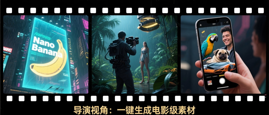 此外,该模型支持 “虚拟试衣” 功能:上传模特图和服装图,即可生成模特穿着这套服装的效果图,面料质感和褶皱细节都栩栩如生,能有效提升产品点击率。 ● 内容创作:从表情包到电影分镜全搞定在短视频素材制作方面,生成 B-roll 素材时,只需描述具体画面需求,如 “密集丛林的空中镜头,阳光穿透树叶”,Nano Banana 就能自动生成符合电影镜头语言的片段。将这些片段和人物素材搭配剪辑,可提升视频完播率。